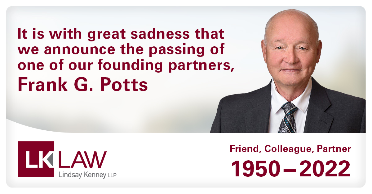Frank was incredibly proud of this firm and the wonderful people that work here. He will be greatly missed by his fellow partners, lawyers, staff and everyone who had the pleasure to know and work with him. We all are better for having known and worked with Frank.